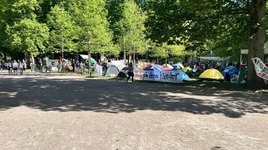 الكومبس – خاص: تظاهر أكثر من مئتي طالب من طلاب جامعة لوند، جنوب السويد، في تظاهرة سلمية دعما لفلسطين، من خلال نصب الخيام الصغيرة في الحديقة المطلة على مبنى الجامعة الرئيسي في لوند.