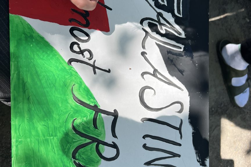 وكتب على إحدى اللافتات عبارة: “أهلا بكم في حديقة فلسطين”