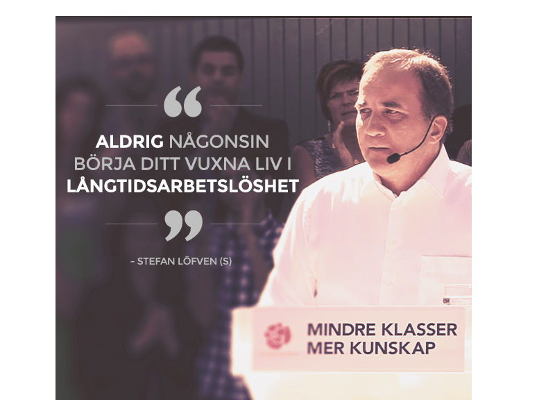 وجاء النقد موجها بالدرجة الأولى لارتفاع نسبة البطالة بين فئة الشباب منذ استلام الائتلاف الحاكم الحكومة، مؤكدا أن 40 الف شاب وشابة انضموا إلى صفوف العاطلين عن العمل مع مطلع العام الحالي فقط، وأن السويد تراجعت بين الدول الأوروبية فيما يخص ارتفاع نسب البطالة بين الشباب بشكل كبير، بغض النظر عن الطرق الحسابية لإحصاءات هذه النسب، حيث قال يجب أن نحسن السياسة وليس الأرقام الإحصائية.