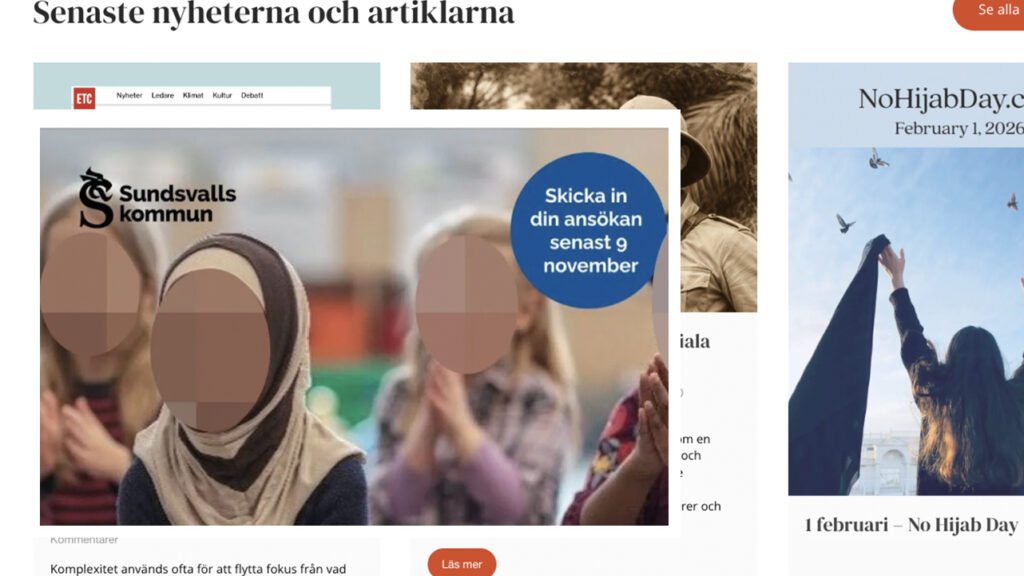 الكومبس – أخبار السويد: كشف تحقيق صحفي أن شركات ومؤسسات سويدية، من بينها جهات حكومية وجامعات، تواجه حملة منسقة تقودها شبكة تُدعى “قوة المرأة 4.0” (Kvinnokraft 4.0)، تهدف إلى إزالة صور النساء والفتيات المحجبات من المواد الإعلامية والإعلانية العامة.