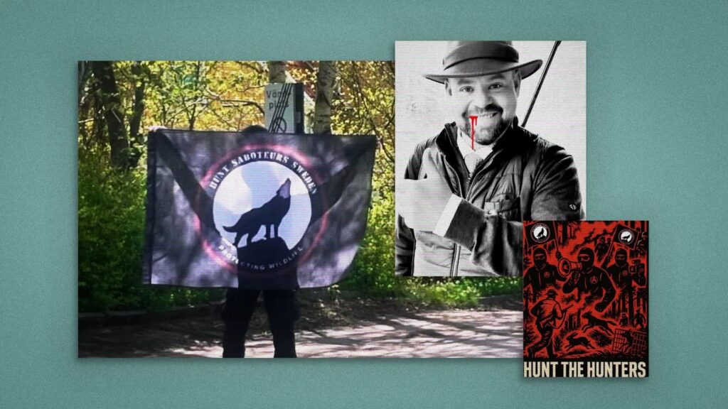 ونشرت مجموعة Hunt Saboteurs Sweden صوراً على الفيسبوك تصور الوزير وكأنه قاتل محب لدماء الذئاب.