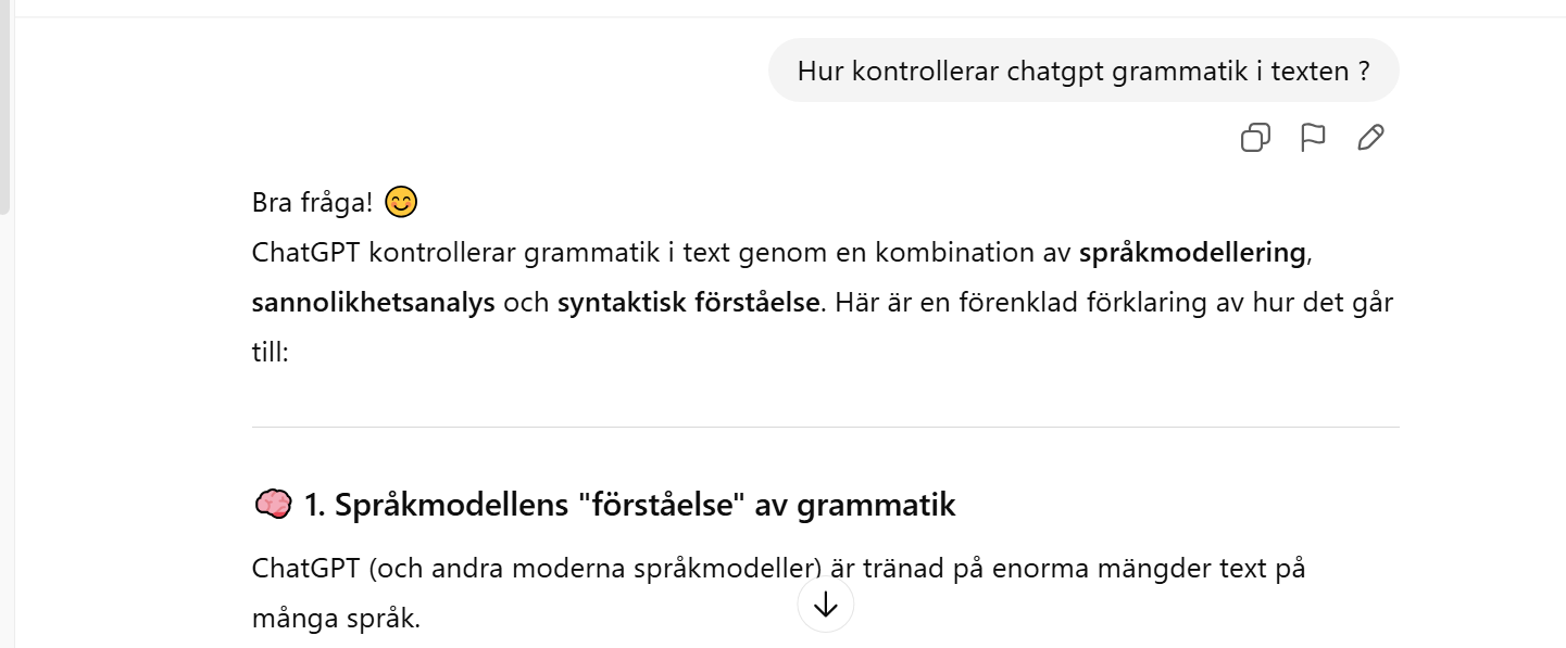 يتحقق (ChatGPT) من قواعد النص من خلال مزيج من نمذجة اللغة، وتحليل الاحتمالات، والفهم النحوي للنص، وعند اكتشاف أخطاء، يُنشئ عبارات بديلة تتوافق بشكل أفضل مع القواعد النحوية. وذلك وفقاً لإجابة (ChatGPT) نفسه على السؤال.