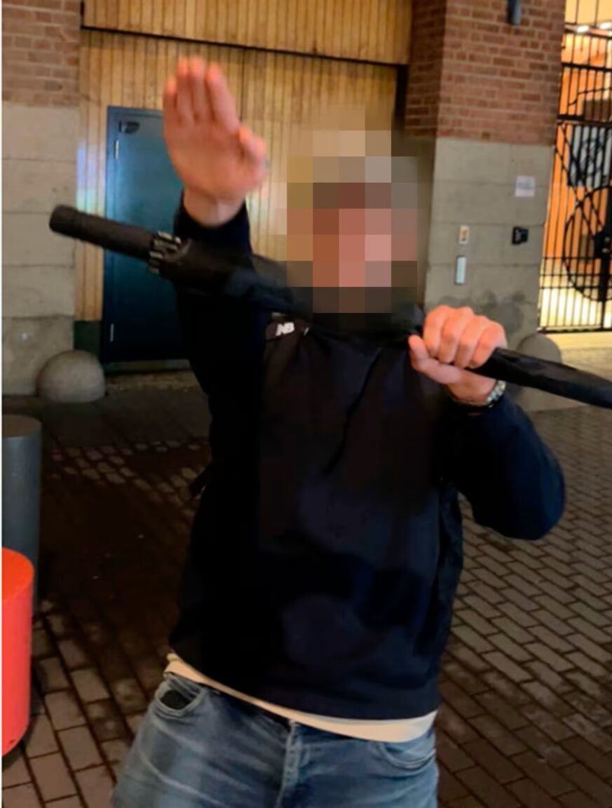 وفي طريقهم عبر المدينة، التُقطت صور للمشتبه بهم أمام متاجر فاخرة مثل “غانت” و”ديور”، حيث قام أحدهم بخربشة شعار “AKS” مع رمز الشمس على واجهة المتجر. وترمز “AKS” إلى “Aktivklubb Sverige”، وهي حركة يمينية متطرفة. وتشتبه الشرطة في وجود صلات تربط الشبان بهذه الحركة.