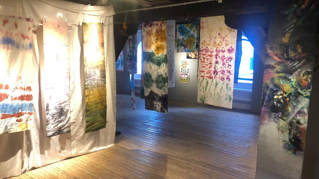 والمعرض عبارة عن ورش عمل فنية تشبه الى حد كبير دعوة لاكتشاف الرسم على القماش الخام باستخدام ألوان صبغ الملابس التقليدية والتي نقلها الفنان من مدينته الأصلية البصرة في جنوب العراق وكذلك الألوان التي اصطحبها معه من مدينة صفاقس التونسية.