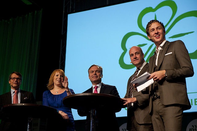 على الطرف الآخر يقف ممثلو تحالف الحمر والخضر في حضور متوافق وبأزياء متناغمة . وقد حرص ممثل حزب اليسار يوناس خوستيدت – 1964- jonas sjostedt على ارتداء ملابس حرة دون ربطة عنق مع ميل للإقتراب من عمر البالغين والشيوخ في المظهر والحضور.